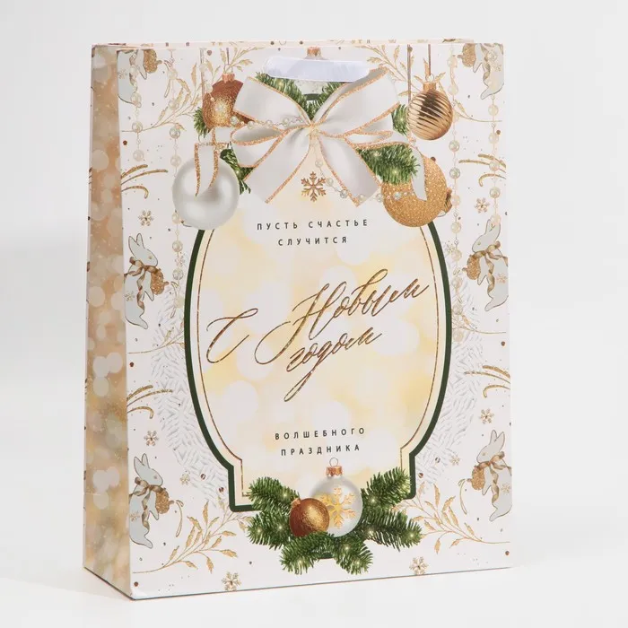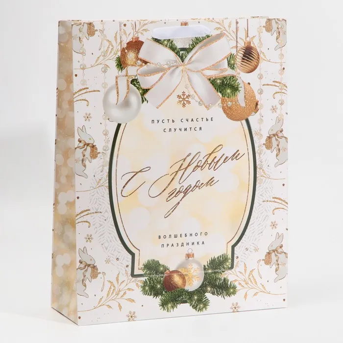 Пакет подарочный новогодний ламинированный «С новым годом», L 31×40×11.5 см — Характеристики
