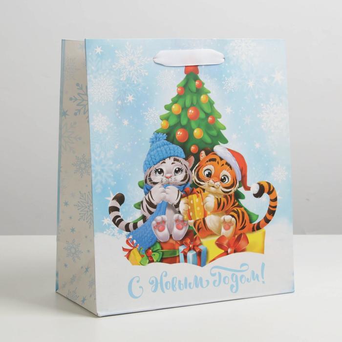 Пакет подарочный новогодний ламинированный «С новым годом», ML 23×27×11.5 см — Характеристики