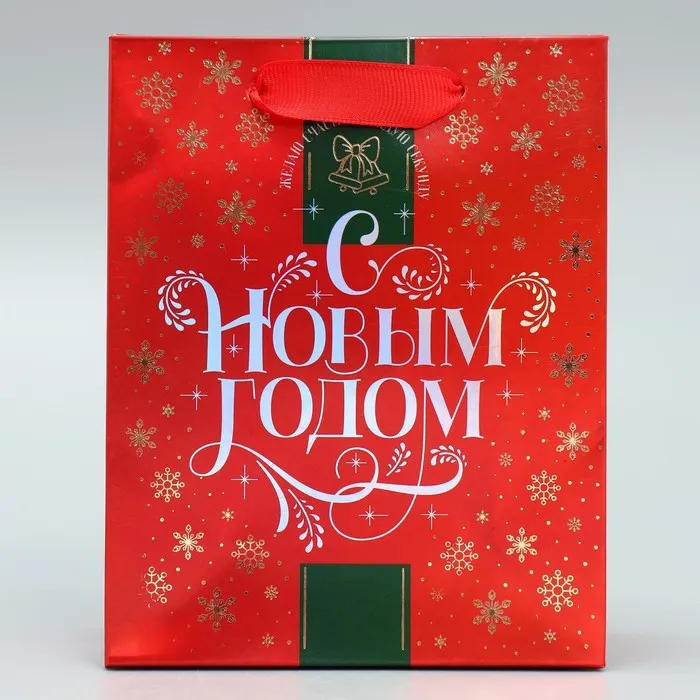 Пакет подарочный новогодний ламинированный «С Новым годом!», S 12 х 15 х 5.5 см — Характеристики