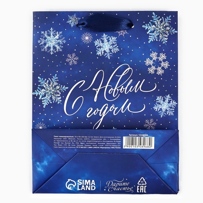 Пакет подарочный новогодний ламинированный «С Новым годом», S 12×15×5.5 см — Характеристики