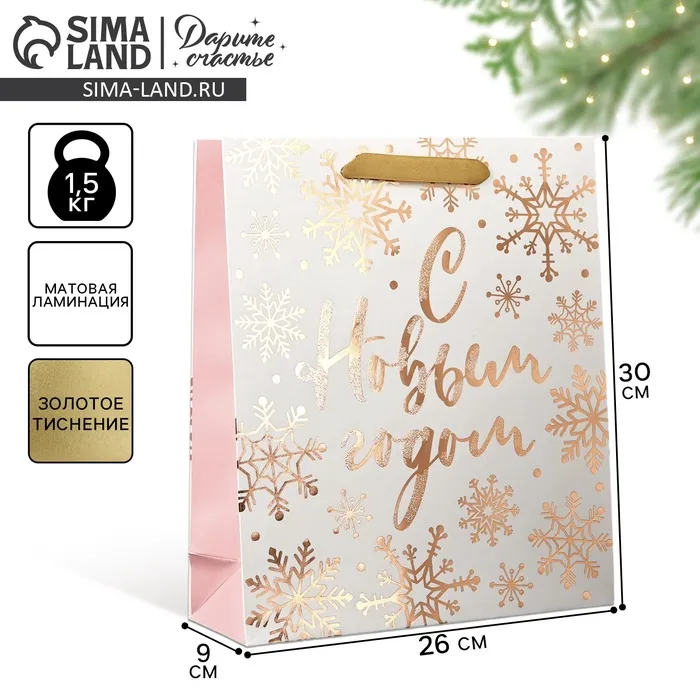 Пакет подарочный новогодний ламинированный «С новым счастьем», тиснение, M 30 х 26 х 9 см — Характеристики