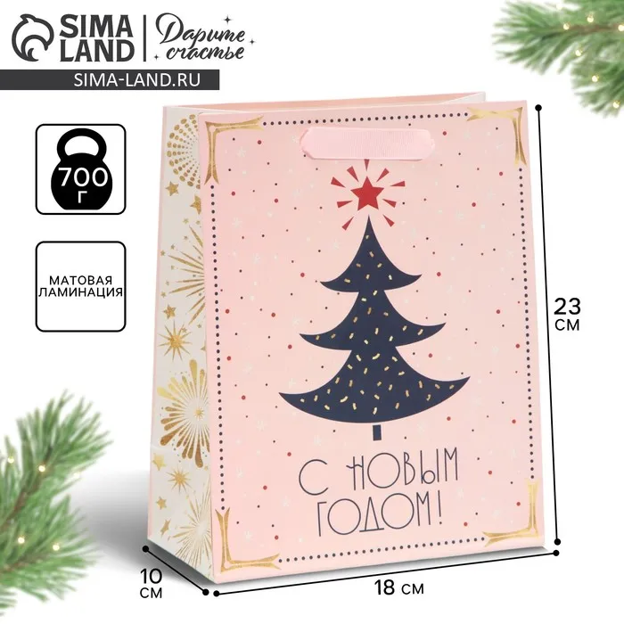 Пакет подарочный новогодний ламинированный «Салют», MS 18 х 23 х 10 см — Характеристики