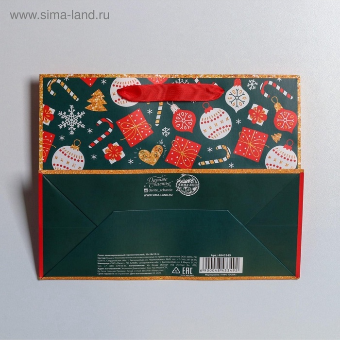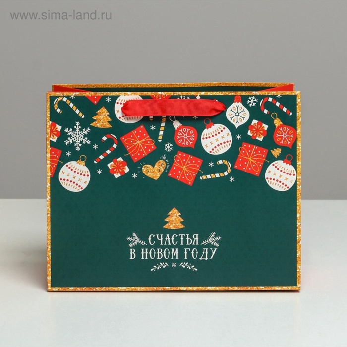 Пакет подарочный новогодний ламинированный «Счастья в Новом году», MS 23 х 18 х 10 см — Характеристики