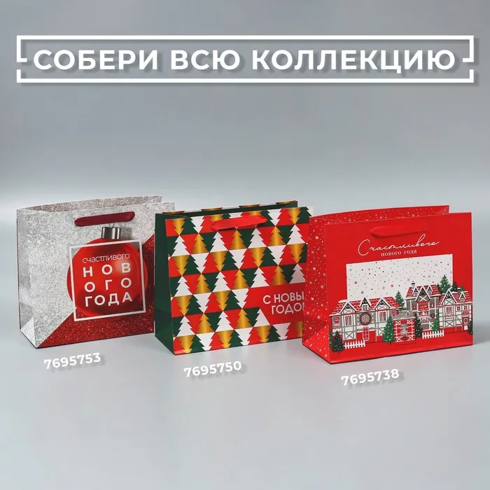 Пакет подарочный новогодний ламинированный «Счастливого нового года», ML 27×23×11.5 см — Характеристики