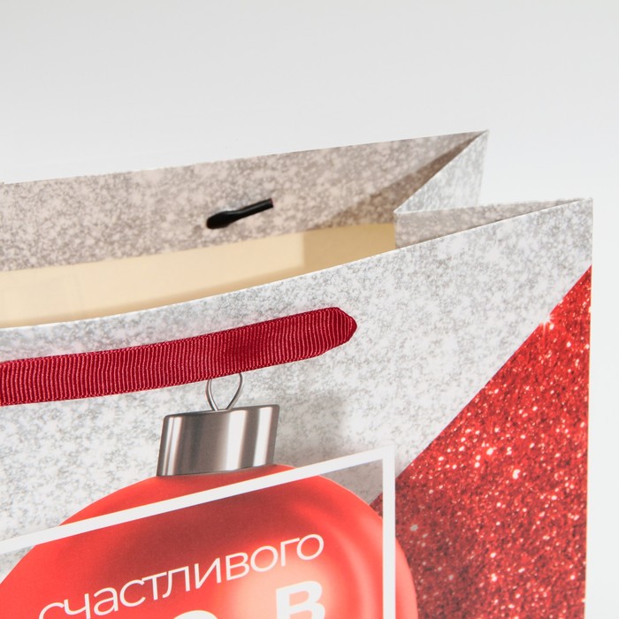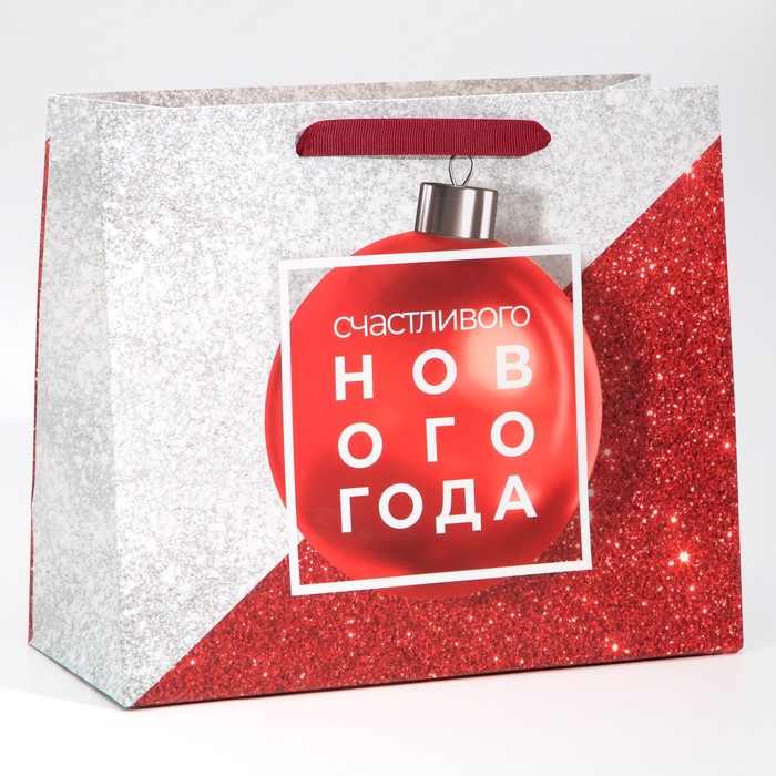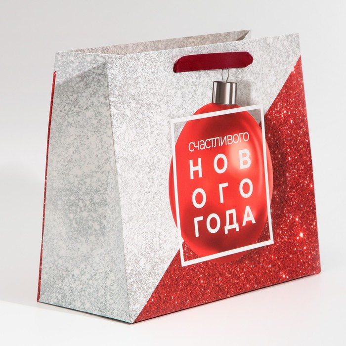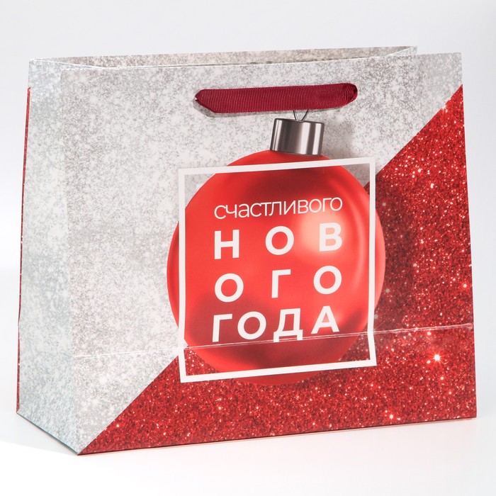 Пакет подарочный новогодний ламинированный «Счастливого нового года», ML 27×23×11.5 см