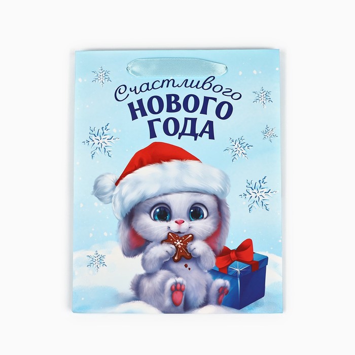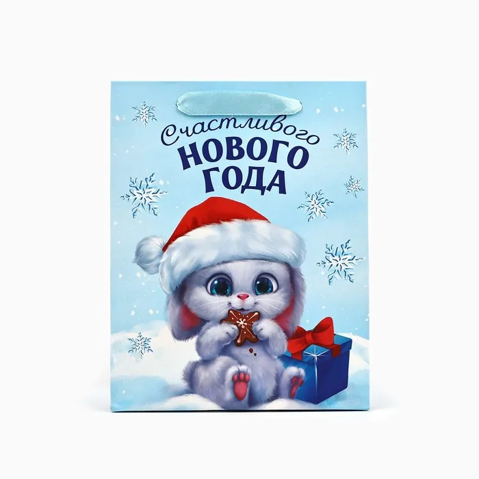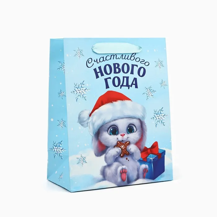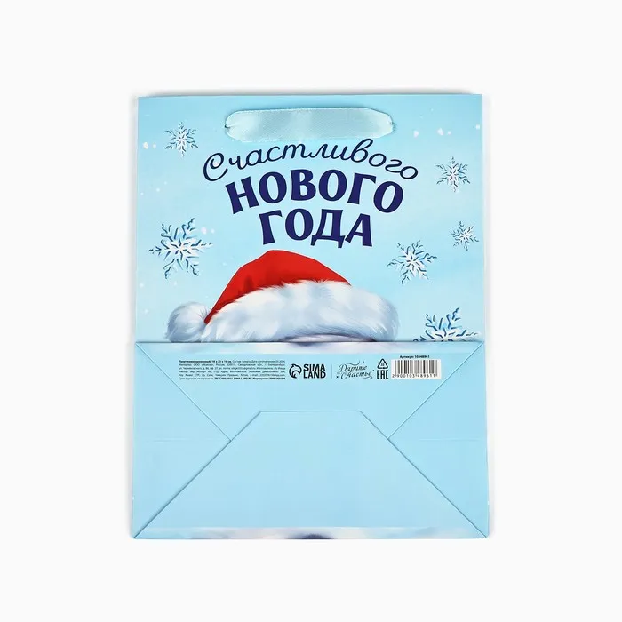 Пакет подарочный новогодний ламинированный «Счастливого Нового года», MS 18×23×10 см — Характеристики