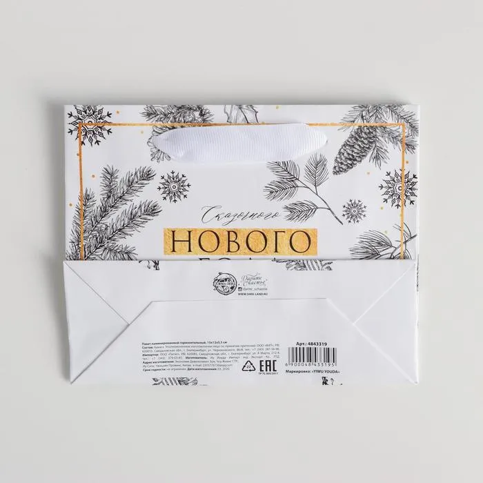 Пакет подарочный новогодний ламинированный «Счастливого Нового года», S 15×12×5.5 см — Характеристики
