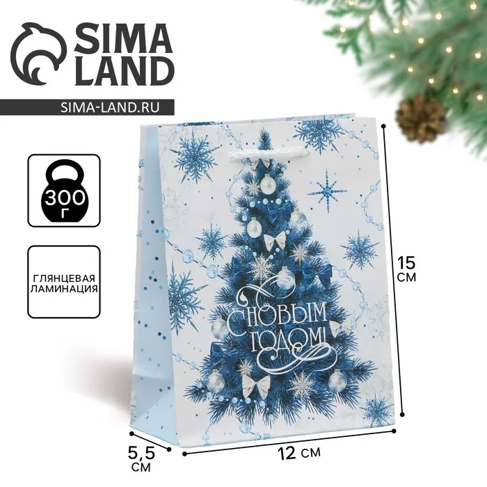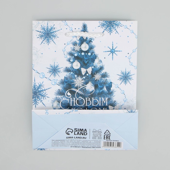 Пакет подарочный новогодний ламинированный «Серебро», S 12 х 15 х 5.5 см — Характеристики