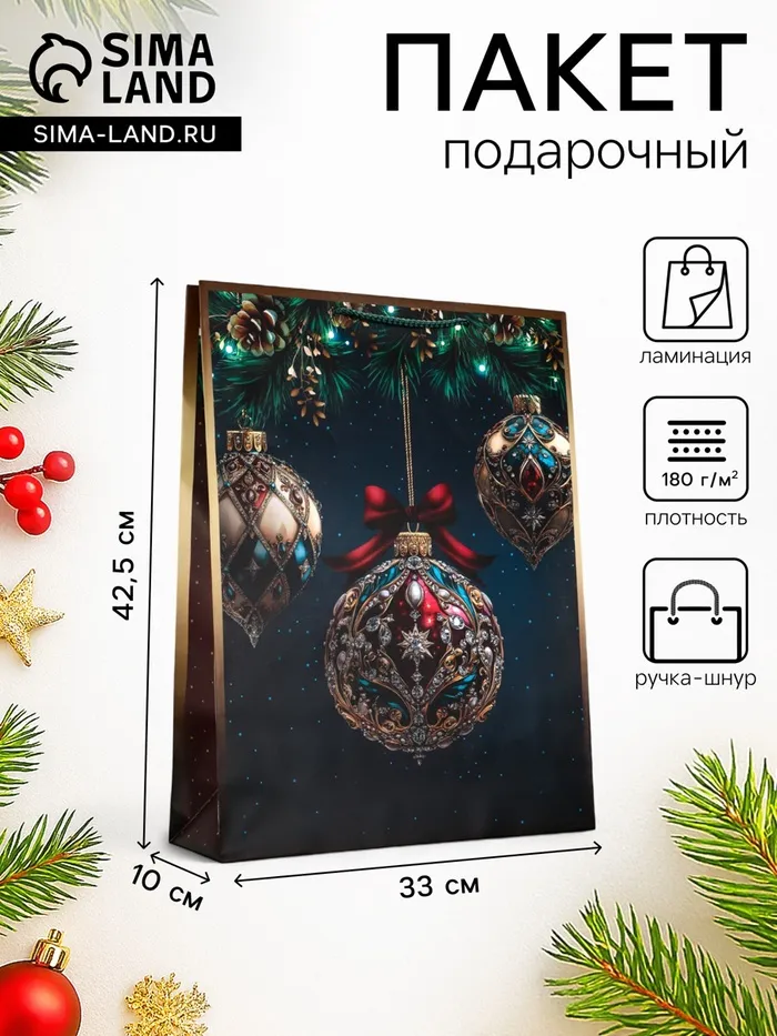 Пакет подарочный новогодний ламинированный, «Шар» , 33×10×42.5 см — Характеристики