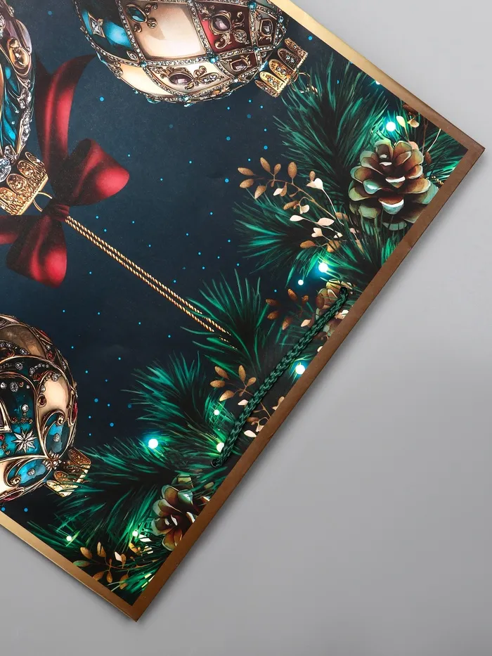 • Универсальный новогодний дизайн: Классическое изображение елочных шаров на зеленом фоне создает праздничное настроение. Лаконичная тематика без явных гендерных акцентов делает пакет универсальным выбором для подарка и мужчине, и женщине, и ребенку.