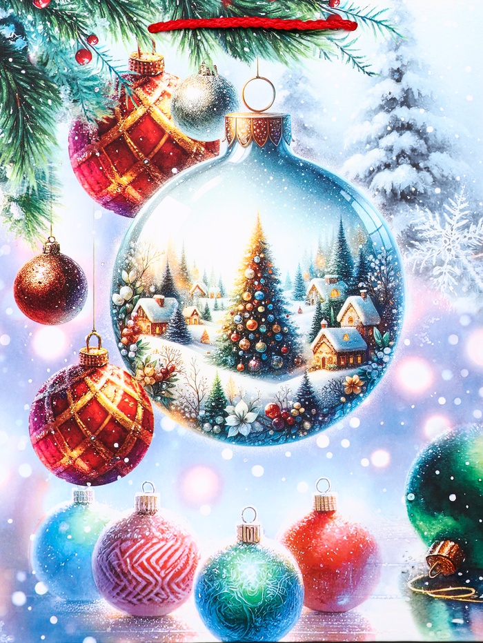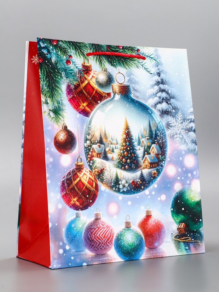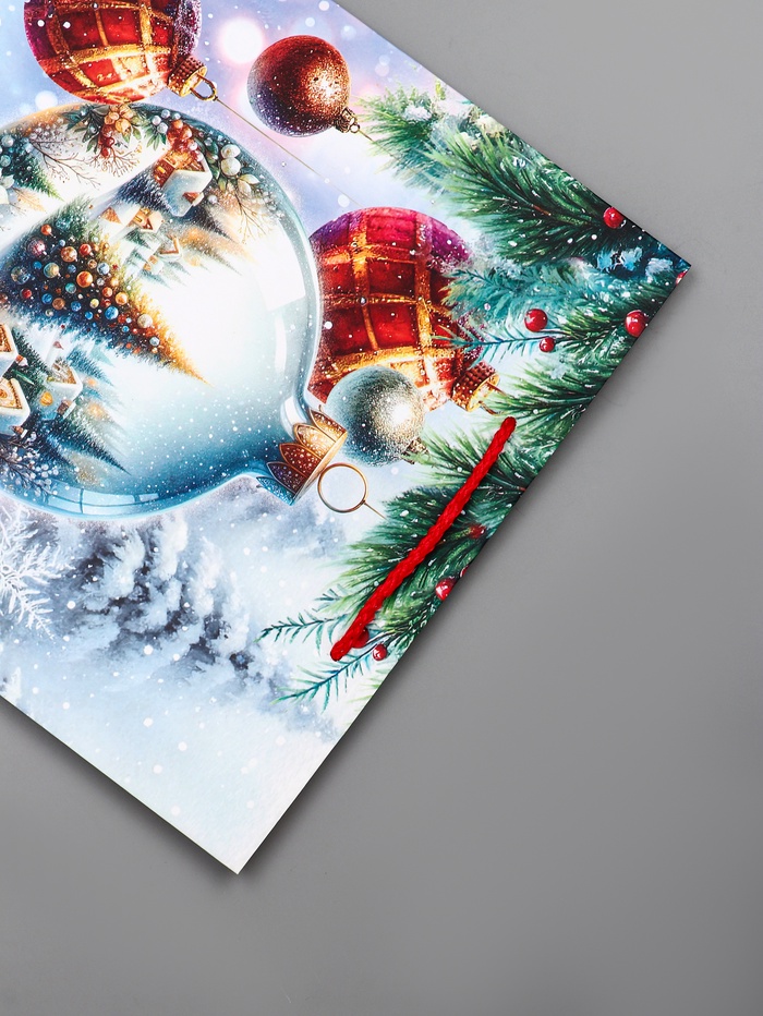 Пакет подарочный новогодний ламинированный, «Шар Новогодний» , 26×12×32 см — Характеристики