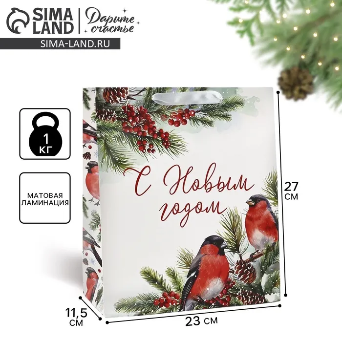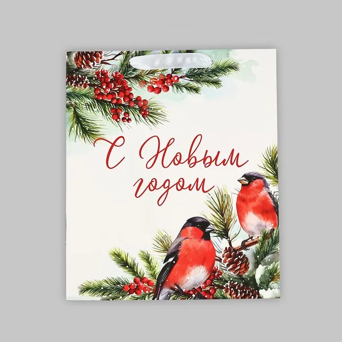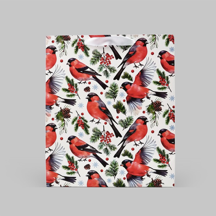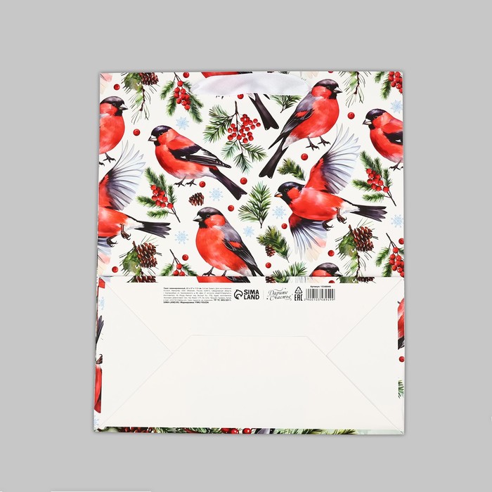 Пакет подарочный новогодний ламинированный «Снегири», ML 23 х 27 х 11.5 см — Характеристики