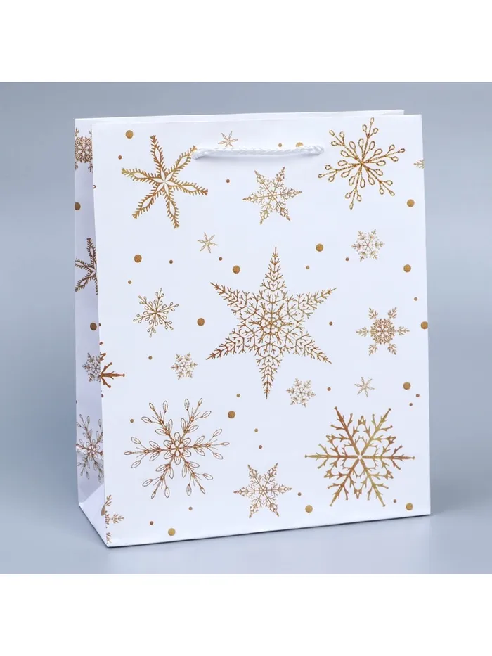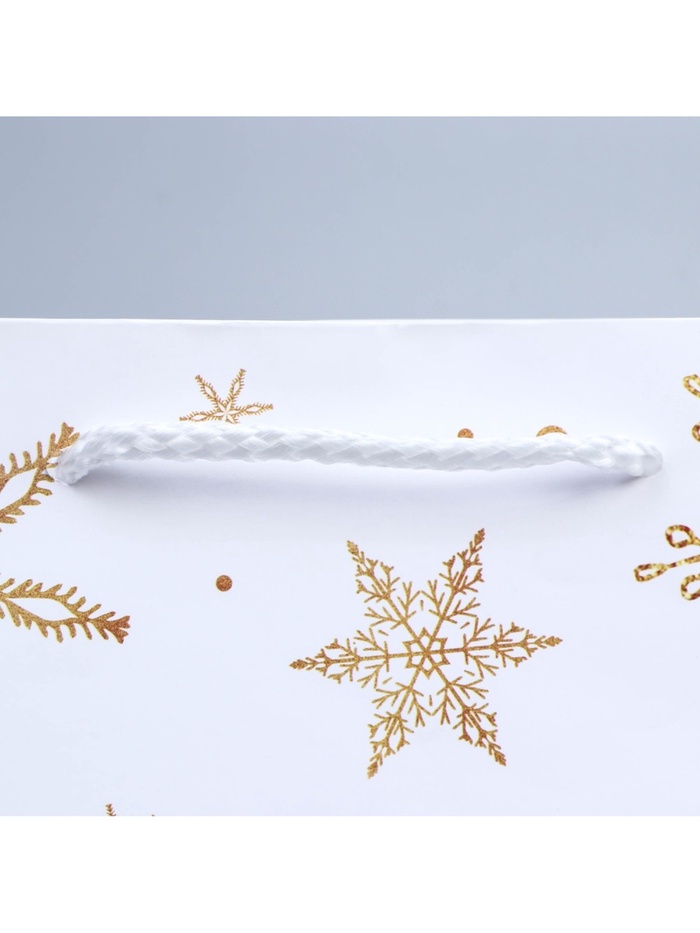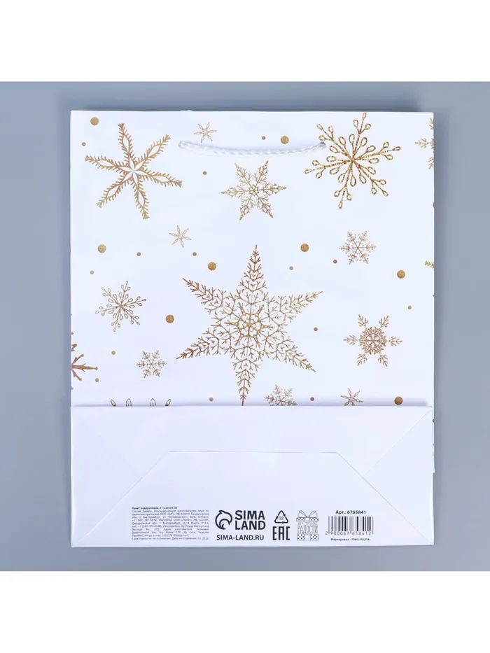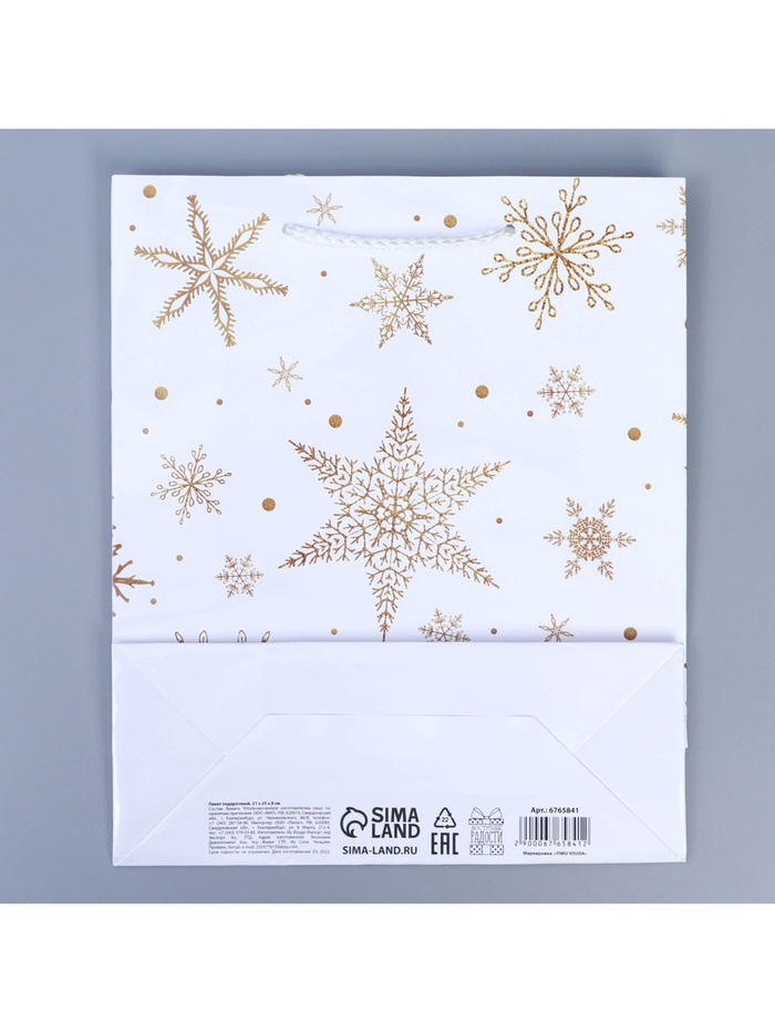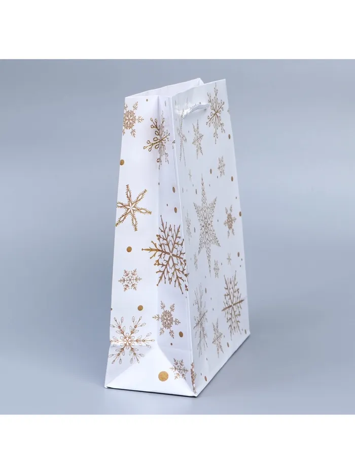 Пакет подарочный новогодний ламинированный «Снежинки», ML 21×25×8 см — Характеристики