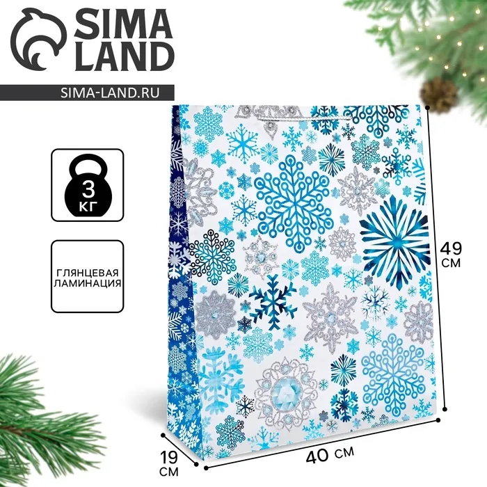 Пакет подарочный новогодний ламинированный «Снежинки», XL 40 х 49 х 19 см — Характеристики