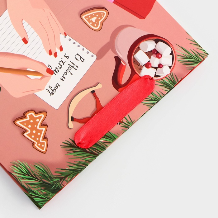 Пакет подарочный новогодний ламинированный «Список желаний», 23×17.8×9.8 см — Характеристики