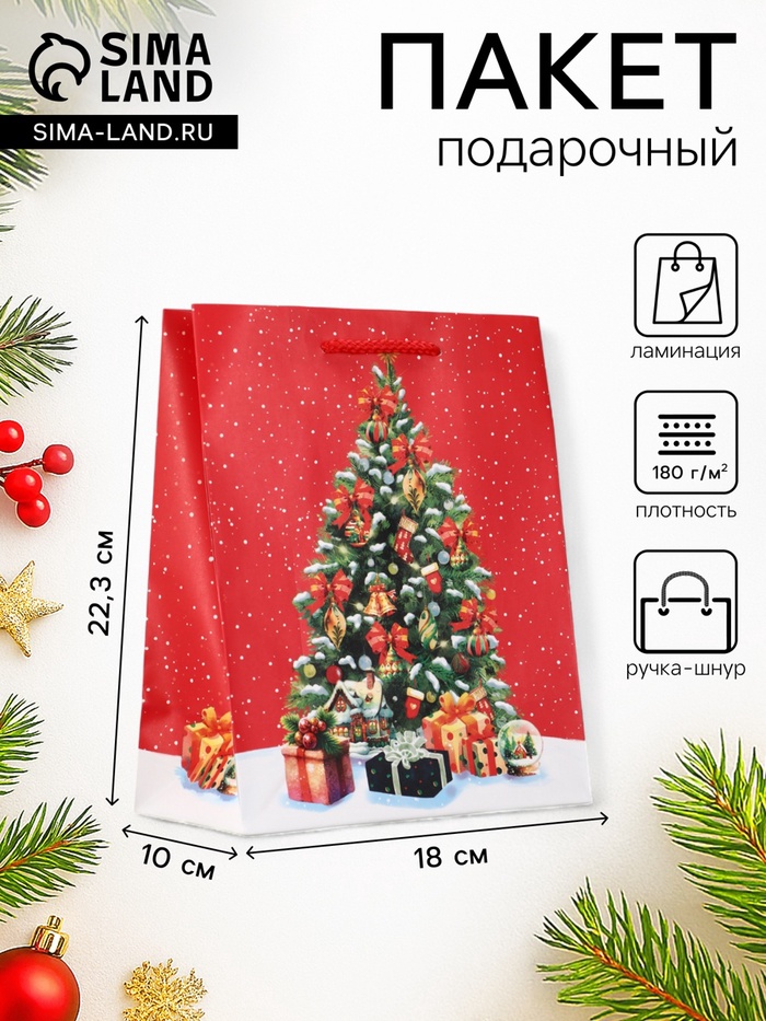 - Универсальный размер M: Вместительные габариты (18×10×22,3 см) идеально подходят для упаковки коробок со сладостями, косметики, игрушек, бутылки шампанского или вязаного свитера. Это классический размер для большинства новогодних подарков.