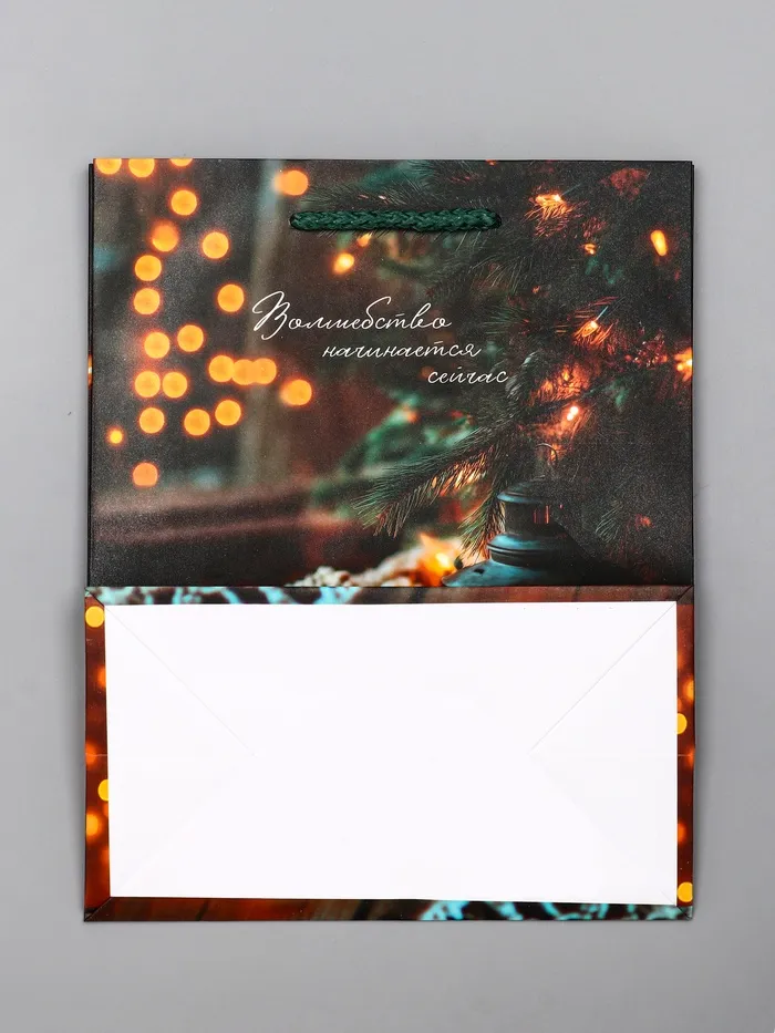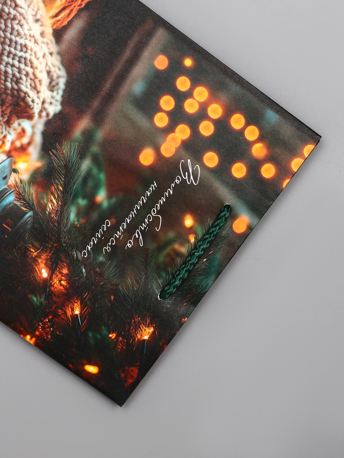 - Праздник в деталях: Удобные ручки-шнуры приятны для руки и надежно закреплены. Специальная ламинация не только придает благородный блеск, но и защищает красочный новогодний принт от повреждений.