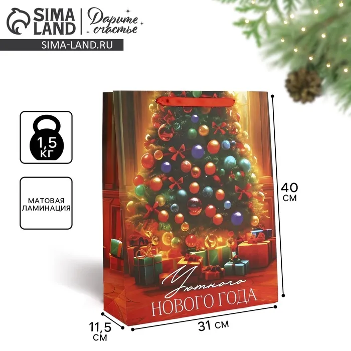 Пакет подарочный новогодний ламинированный «Уютный Новый год», L 31×40×11.5 см — Характеристики