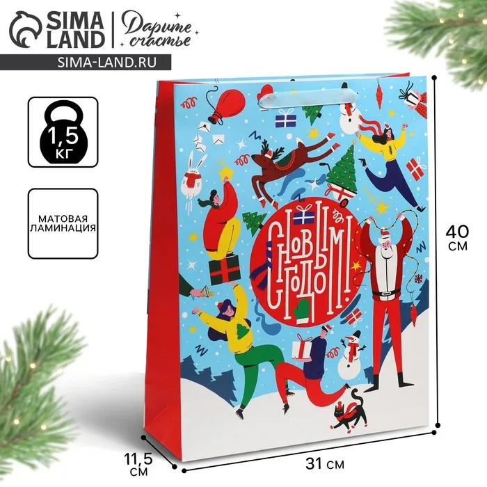 Пакет подарочный новогодний ламинированный «Веселье», L 31 х 40 х 11.5 см — Характеристики