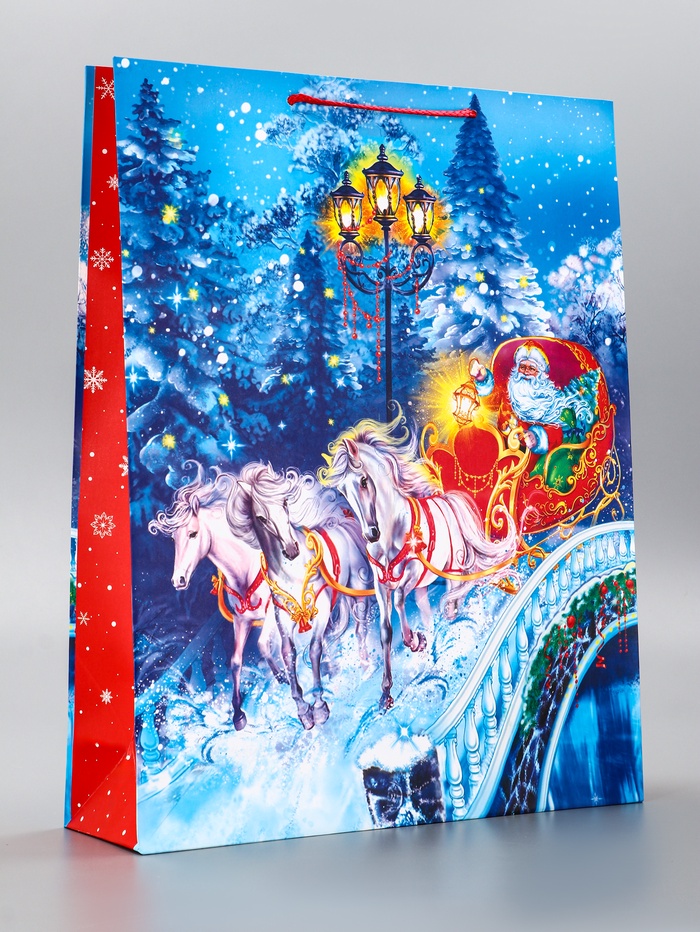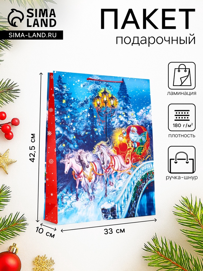 Пакет подарочный новогодний ламинированный, «Везем подарки» , 33×10×42.5 см — Характеристики