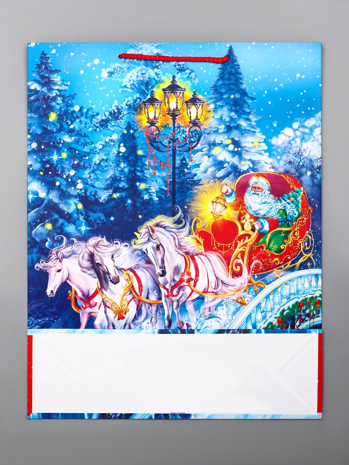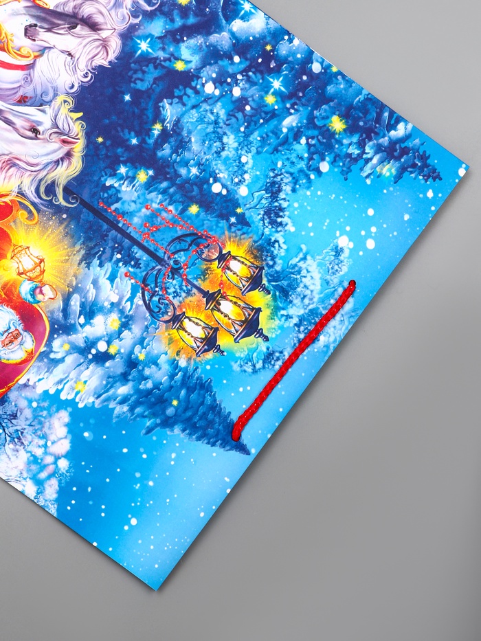- Надежная ламинация: Плотная бумага 180 г/м² с двухсторонним ламинированием защищает красочный рисунок от истирания и влаги. Шнуровые ручки удобно держать в руке, они надежно закреплены и не порвутся даже при переноске довольно тяжелого подарка.