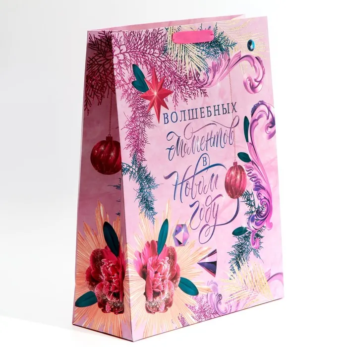 Пакет подарочный новогодний ламинированный «Волшебных моментов», L 31 х 40 х 11.5 см — Характеристики