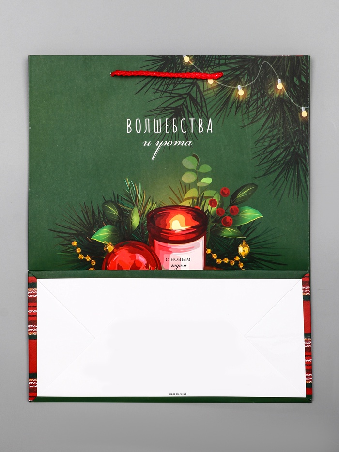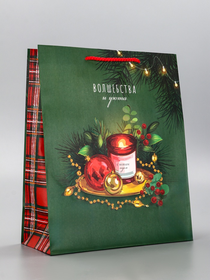 Пакет подарочный новогодний ламинированный, «Волшебства и уюта» , 26×12×32 см — Характеристики