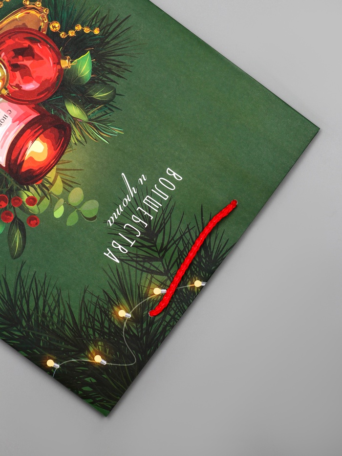 - Тематический дизайн: Сочный зеленый фон с праздничными надписями создает атмосферу зимнего волшебства и домашнего уюта. Универсальное оформление подходит для подарков всем членам семьи.