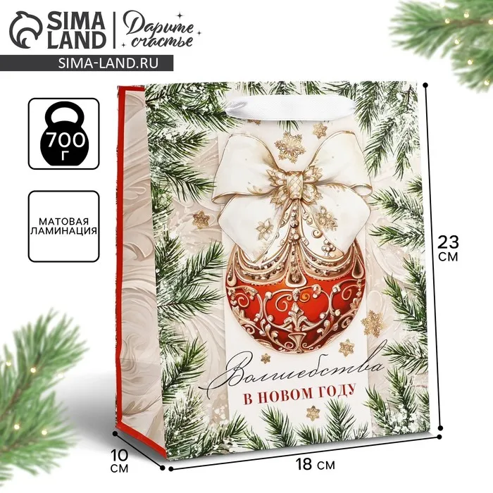 Пакет подарочный новогодний ламинированный «Волшебства в Новом году», MS 18 х 23 х 10 см — Характеристики