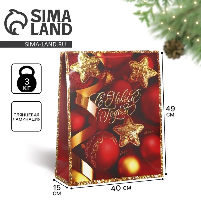 Пакет подарочный новогодний ламинированный XL «Новогодние звезды», 40 х 49 х 15 см — Характеристики