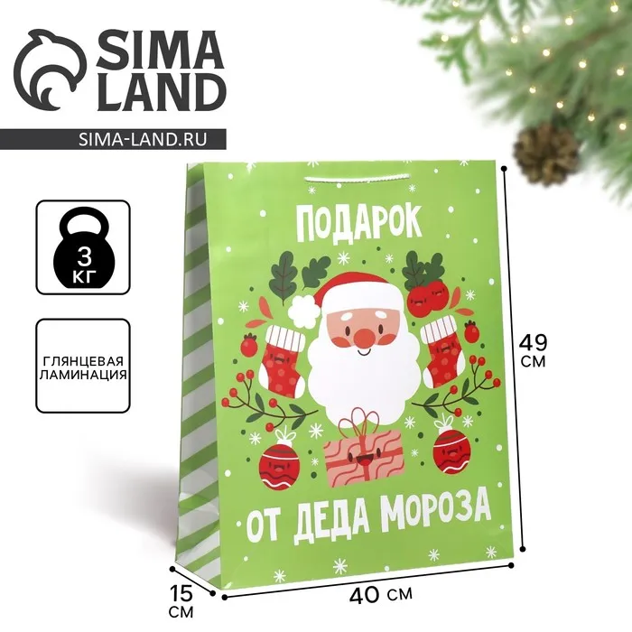 Пакет подарочный новогодний ламинированный XL «Подарок от дедушки», 40 х 49 х 15 см — Характеристики