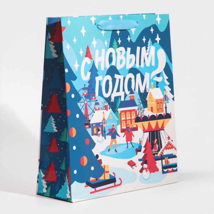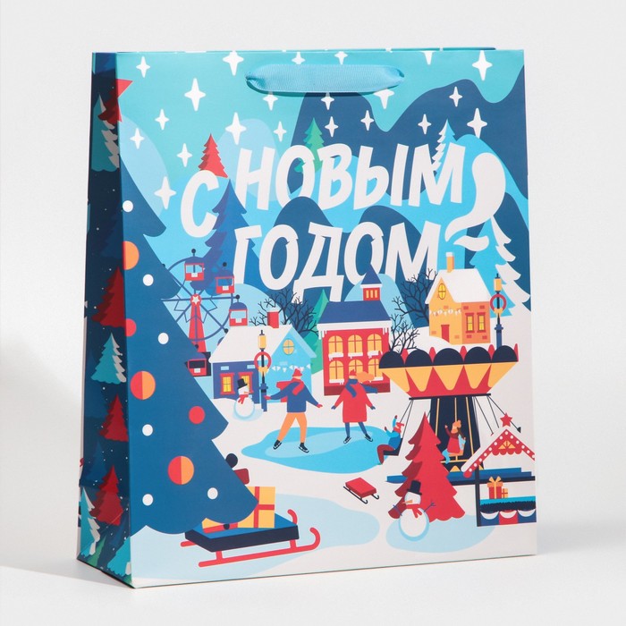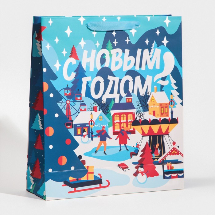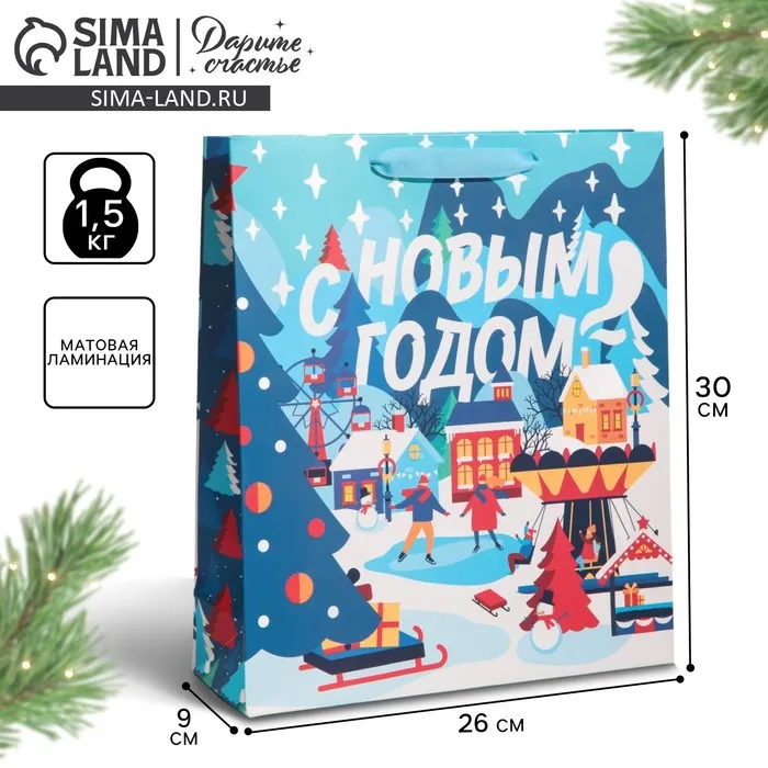 Пакет подарочный новогодний ламинированный «Зима в городе», M 26 х 30 х 9 см — Характеристики