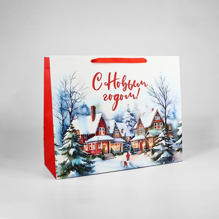Пакет подарочный новогодний ламинированный «Зимняя деревня», XL 49 х 40 х 19 см — Характеристики