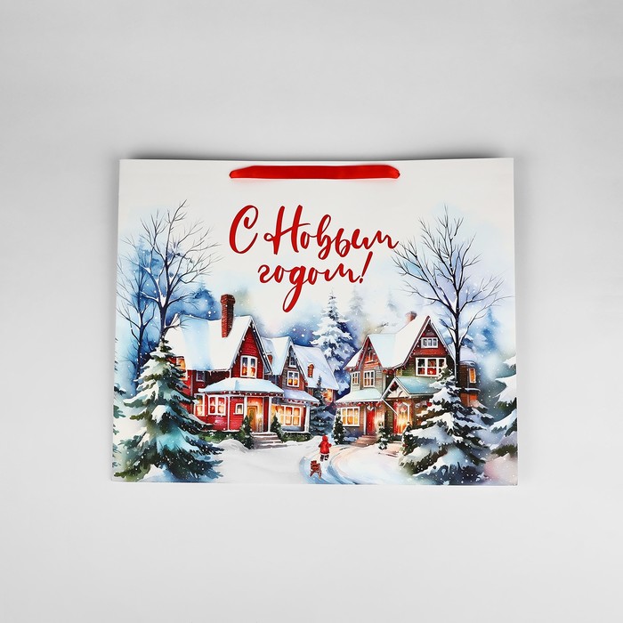 Пакет подарочный новогодний ламинированный «Зимняя деревня», XL 49 х 40 х 19 см