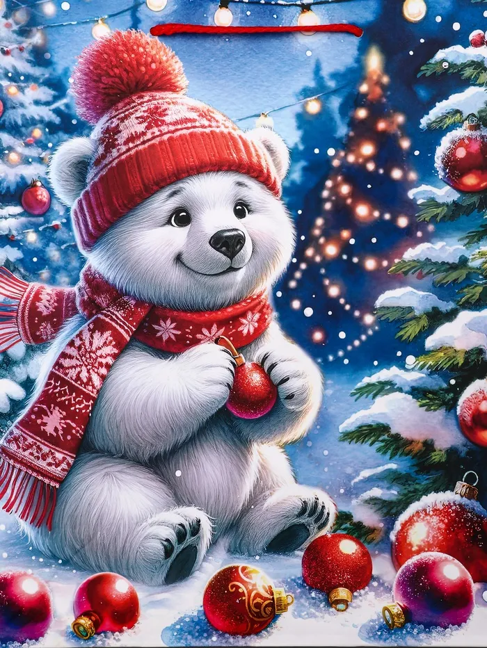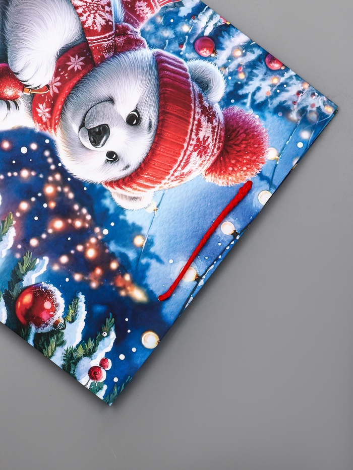 - Динамичный зимний сюжет: Изображение животных в движении и праздничных элементов передает атмосферу активного зимнего отдыха. Универсальный дизайн подходит для подарков детям и взрослым, вызывая ассоциации с веселыми зимними играми.