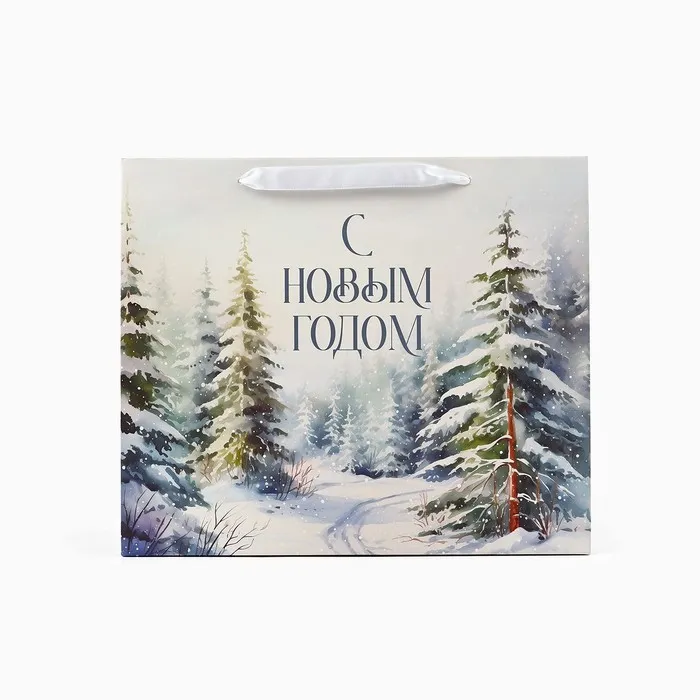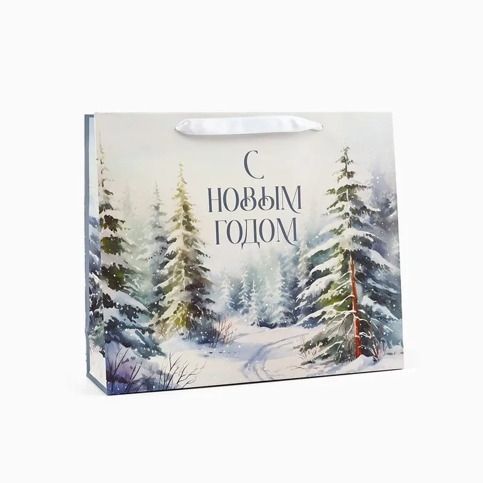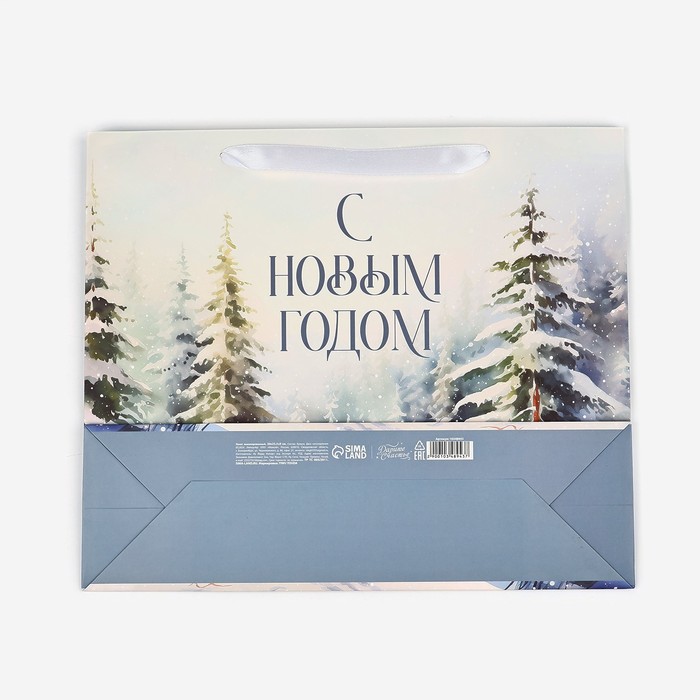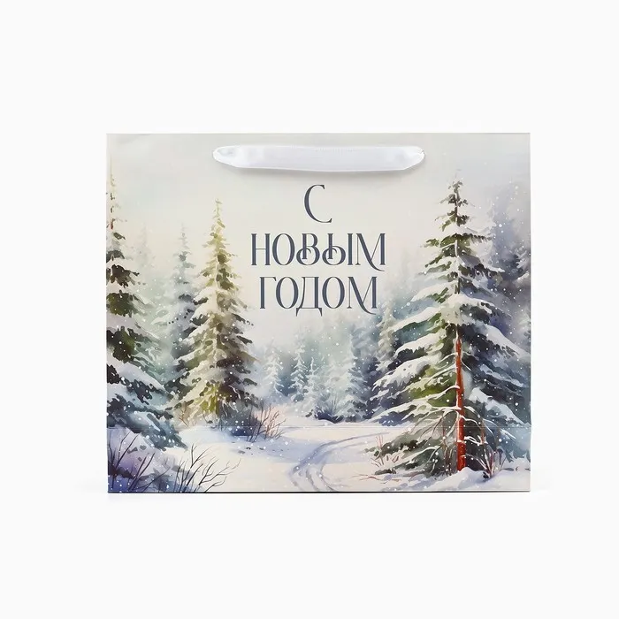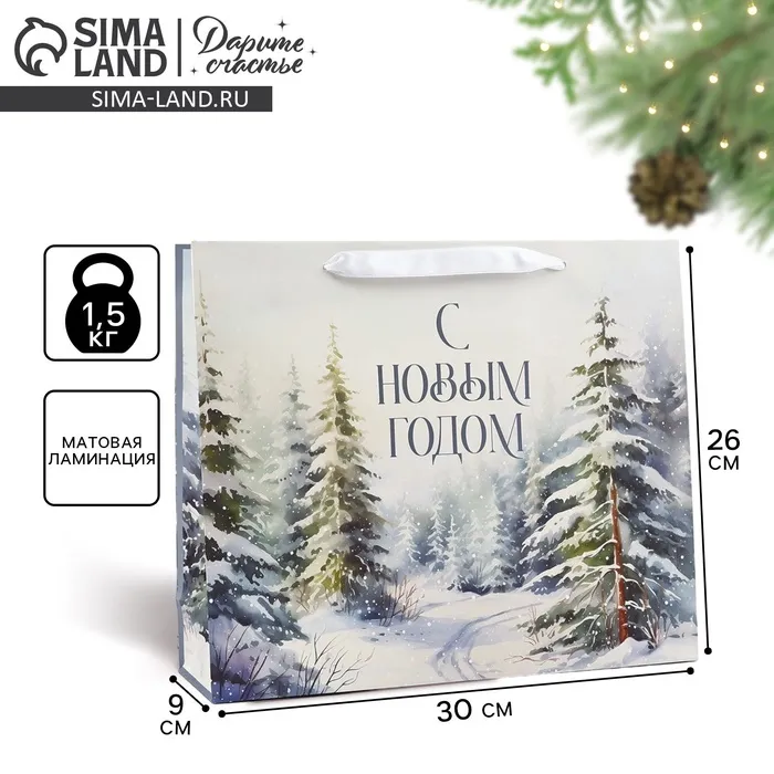 Пакет подарочный новогодний ламинированный «Зимний лес», M 26 х 30 х 9 см — Характеристики