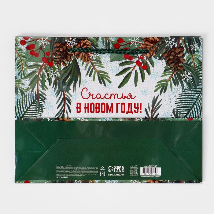 Пакет подарочный новогодний ламинированный «Зимний лес», MS 23 х 18 х 8 см — Характеристики