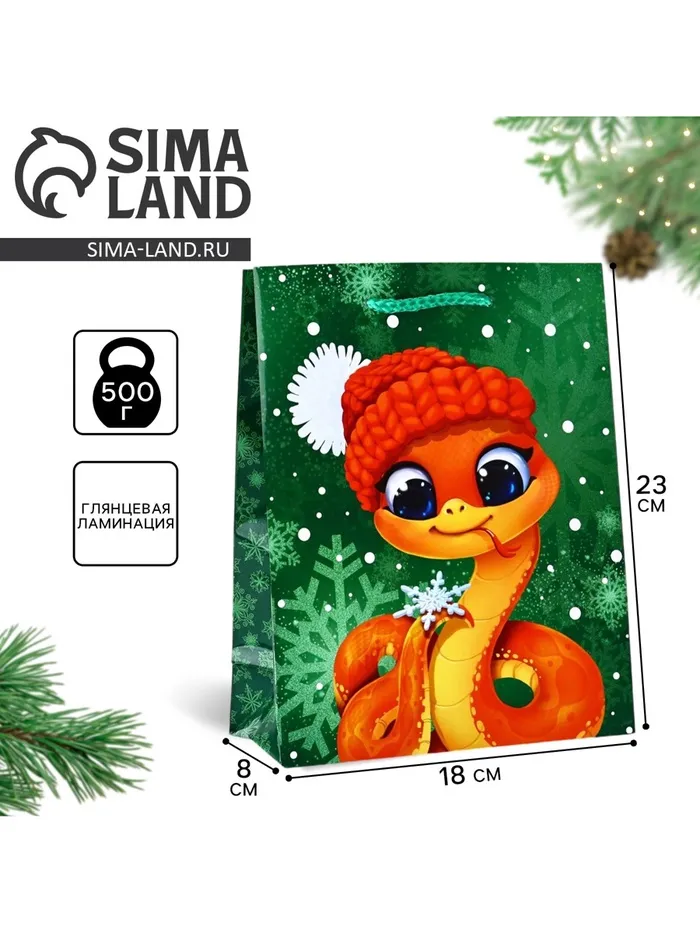 Пакет подарочный новогодний ламинированный «Змея 2025», MS 18 х 23 х 8 см — Характеристики