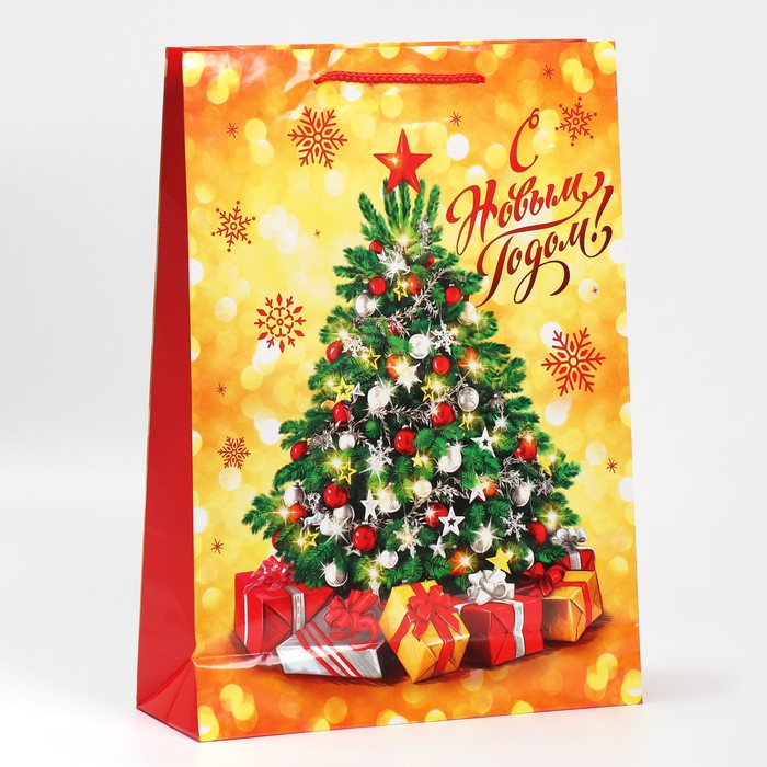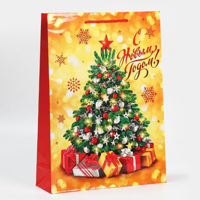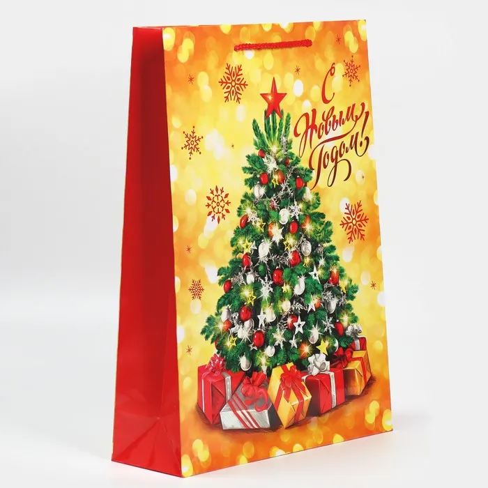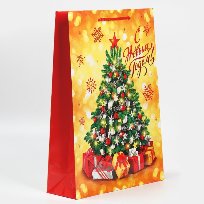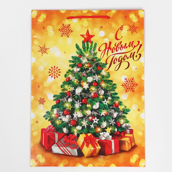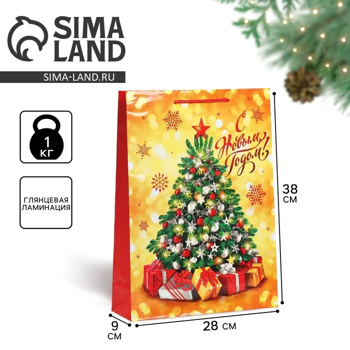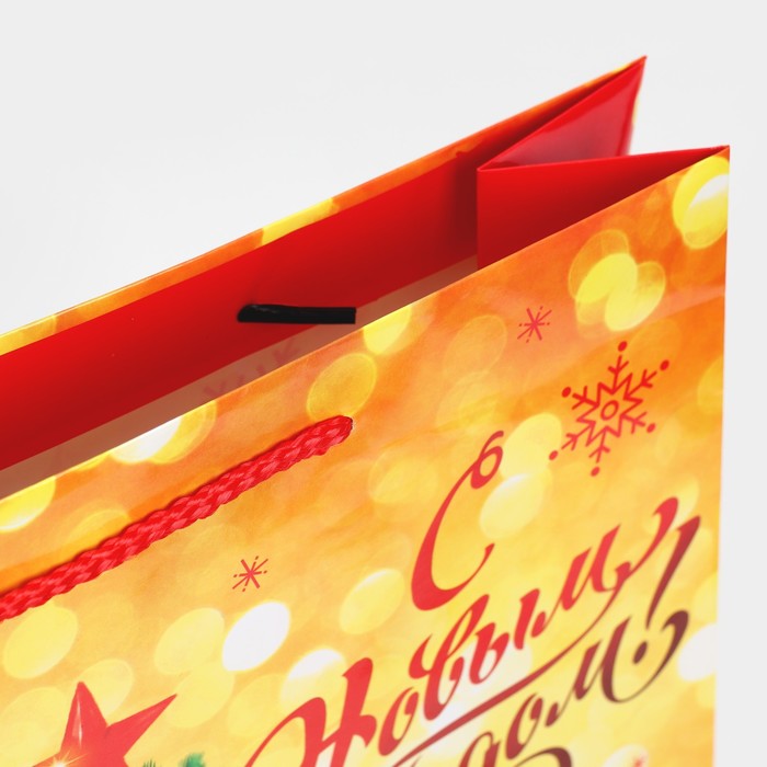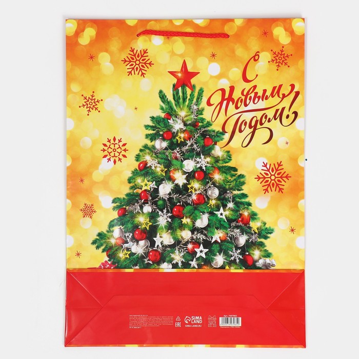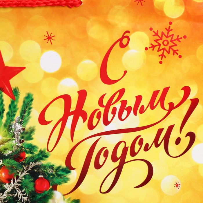 Пакет подарочный новогодний ламинированный «Золото и снежинки», L 28 х 38 х 9 см — Характеристики