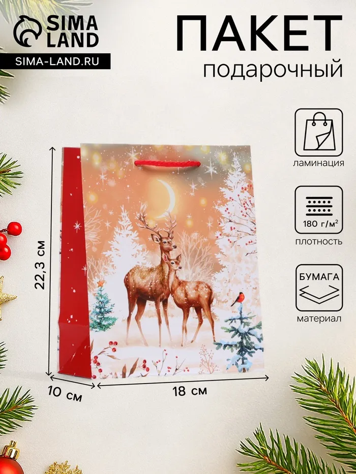Пакет подарочный новогодний «Олени», 18×22.3×10 см — Характеристики