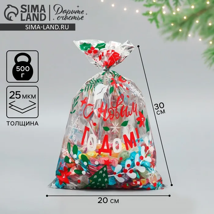 Пакет подарочный новогодний пластиковый «С новым счастьем», 20 х 30 см — Характеристики