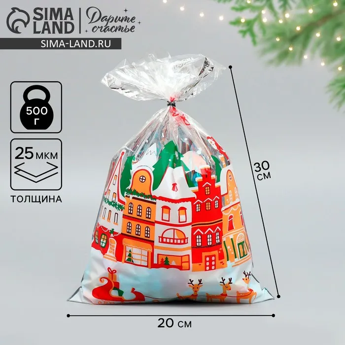 Пакет подарочный новогодний пластиковый «С праздником», 20 х 30 см — Характеристики