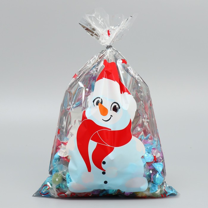Пакет подарочный новогодний пластиковый «Снеговичок», 20 х 30 см — Характеристики