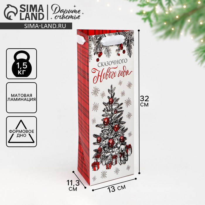 Подарочный пакет новогодний — идеальный выбор для упаковки бутылки.