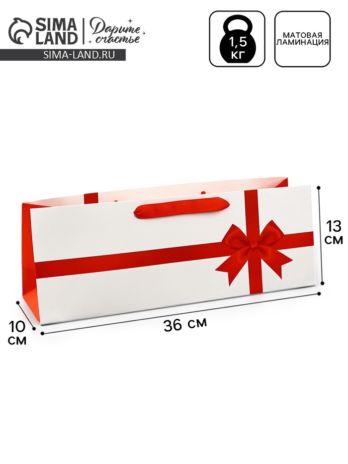 Пакет подарочный новогодний под бутылку «Бант», 13×36×10 см — Характеристики