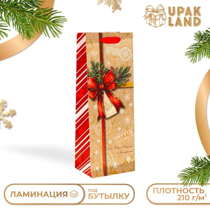 Пакет подарочный новогодний под бутылку «Почта», 13×36×10 см — Характеристики