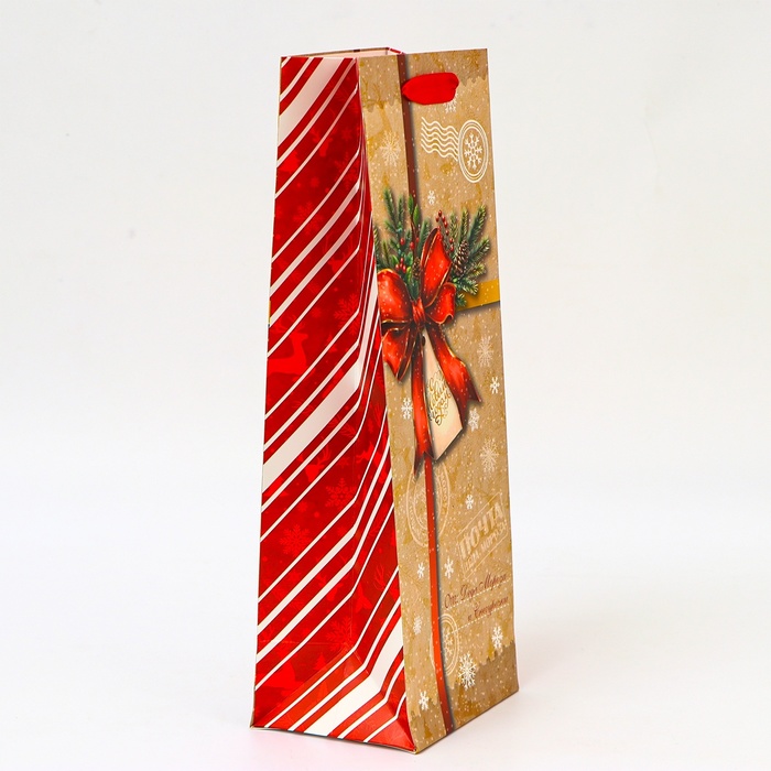 Подарочный пакет новогодний — идеальный выбор для упаковки бутылки.