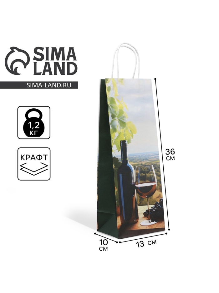 - Размеры пакета составляют 12 х 36 х 8,5 см, что позволяет удобно разместить внутри бутылку и сохранить её целостность.
