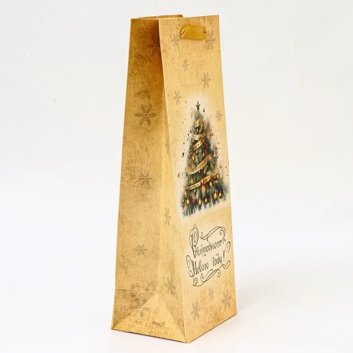 Подарочный пакет новогодний — идеальный выбор для упаковки бутылки.