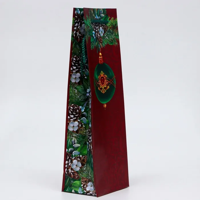 Пакет подарочный новогодний под бутылку, упаковка «Дивный шар», 12×36×8.5 см — Характеристики